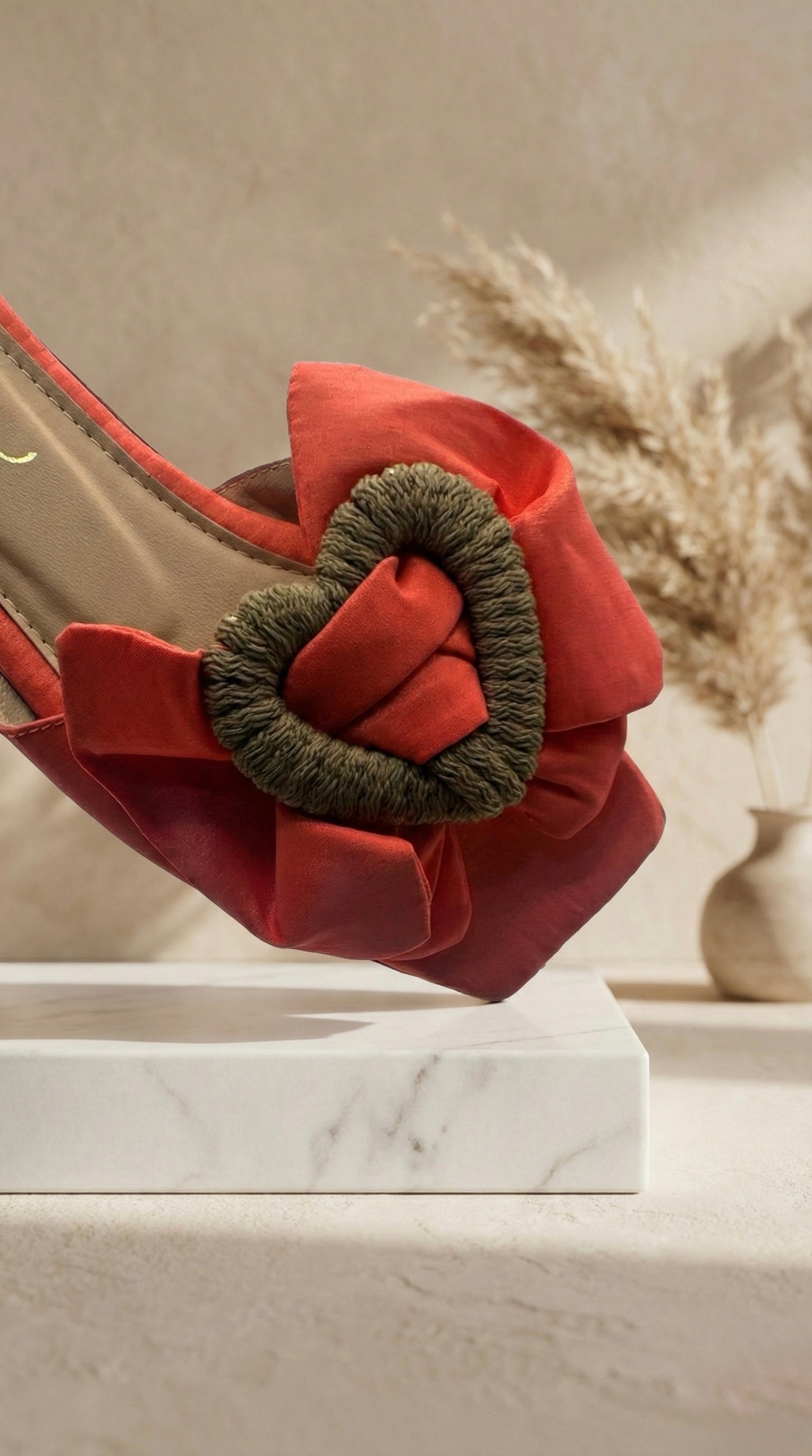 "Imagine a charming sandal crafted in Colombia, featuring a delicate medium-sized bow made from taffeta fabric. This handcrafted footwear is adorned with a heart-shaped buckle, adding a touch of artisanal elegance to its design. Perfect for those who appreciate both style and craftsmanship, it embodies the unique artistry of Colombian shoemaking"